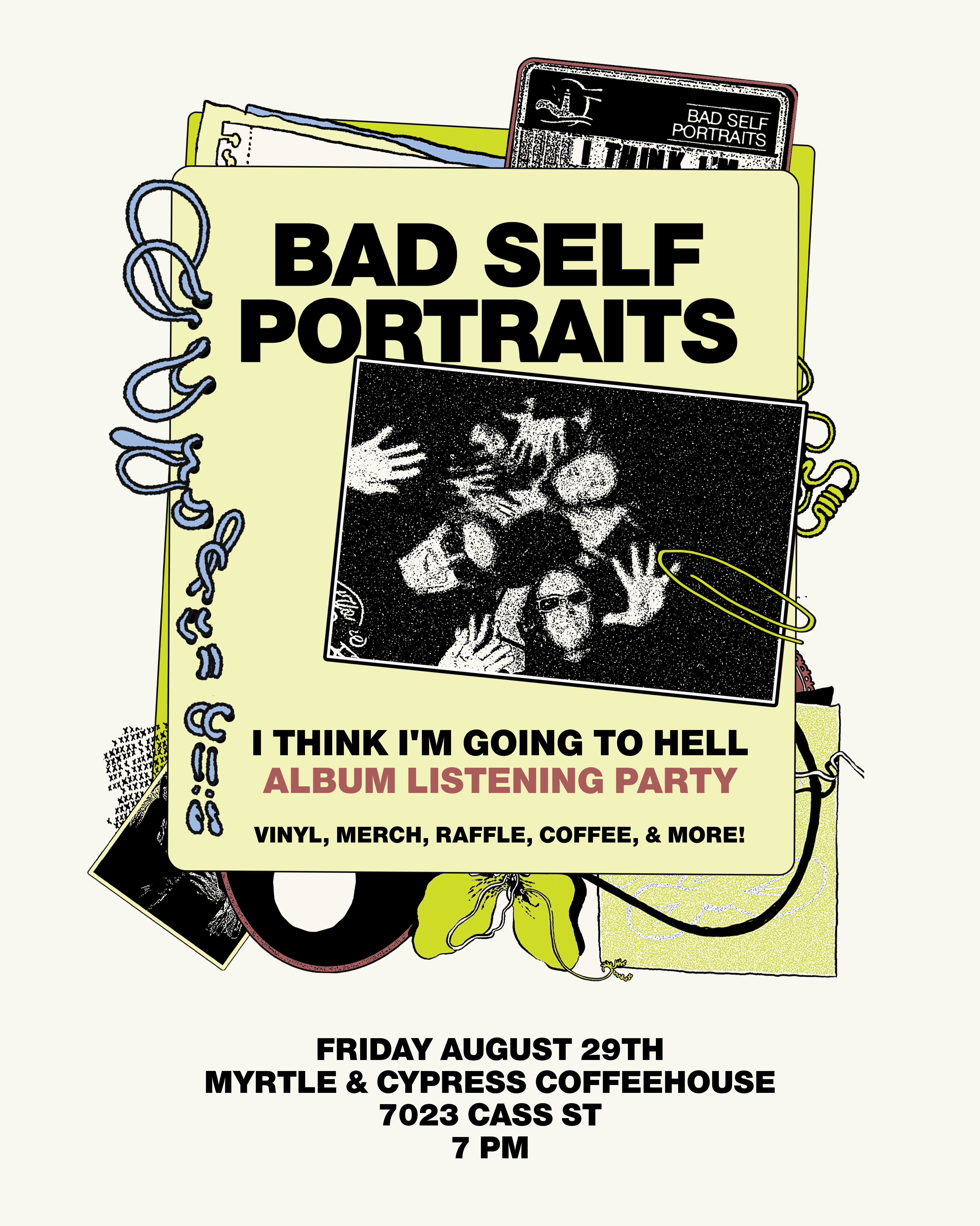 hey all! we’re releasing a new album in september, but we’re doing a special early listening party tonight at myrtle & cypress! we’ll have vinyl + new merch with us if anyone is interested in stopping by! :-)