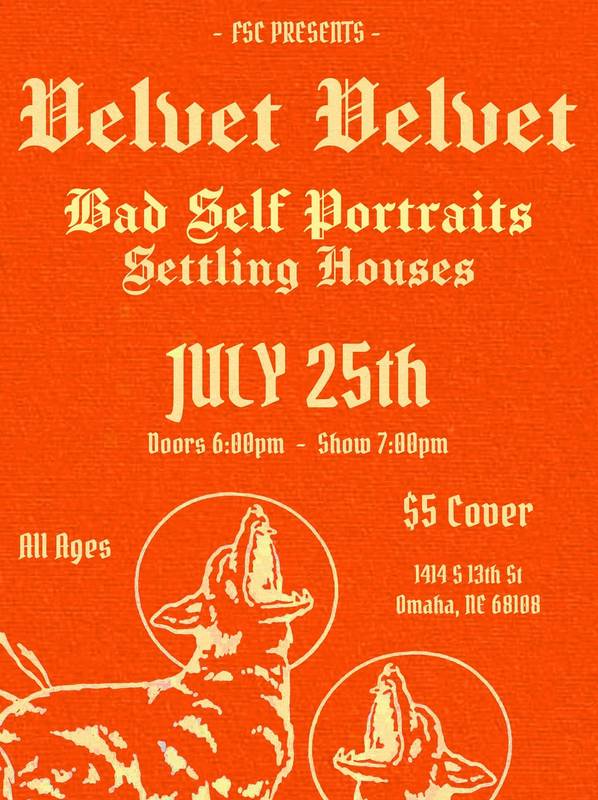 Velvet(x2), BadSelfPortraits, Settling Houses